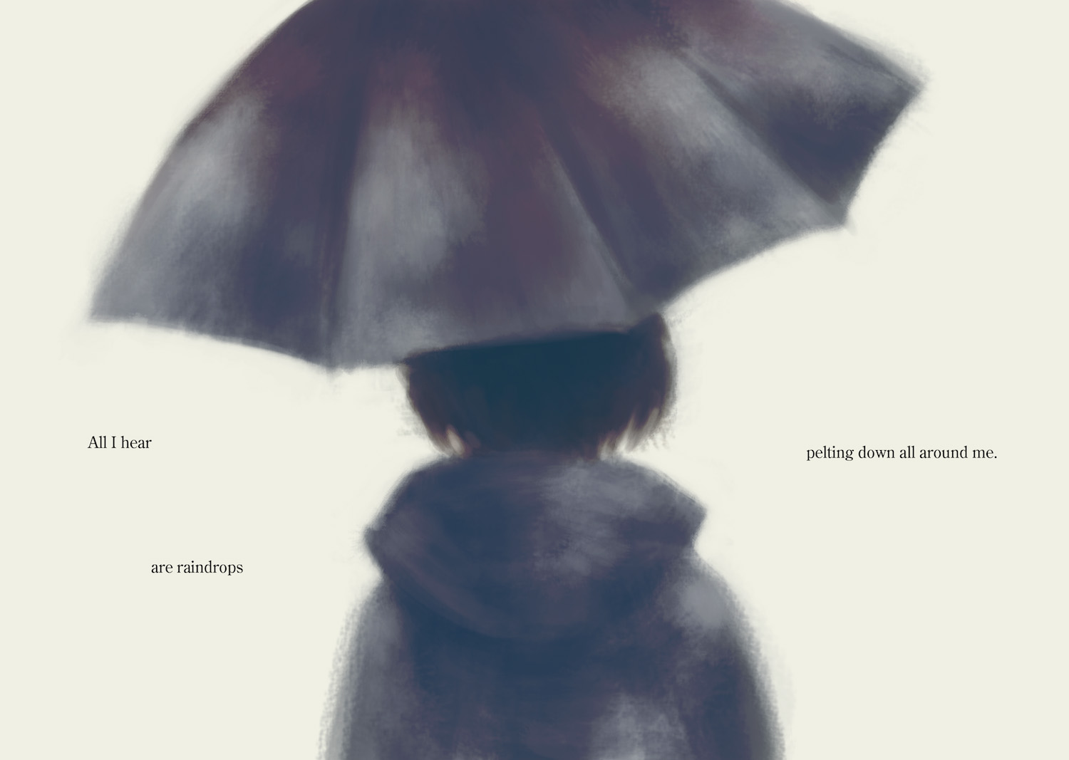 With an umbrella from her closet and the socks off her feet, a young girl witnesses the spell that rain casts on her backyard.